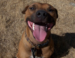 The main problem that Joey and I had to work on, was that Joey's play wrestling at the dog park would turn into dog aggression. This was extremely distressing to me since he's a pit bull, and people would get extra afraid when this would happen. What would happen, is that Joey would wrestle with a dog or a few at the dog park, and then it seems like a switch would flip in his brain, and in a few seconds he would become aggressive toward the other dog - he would be deaf and blind to anyone trying to get him to stop. Sometimes he would fixate on a specific dog and hound that dog, so I'd have to chase Joey down and leash him.